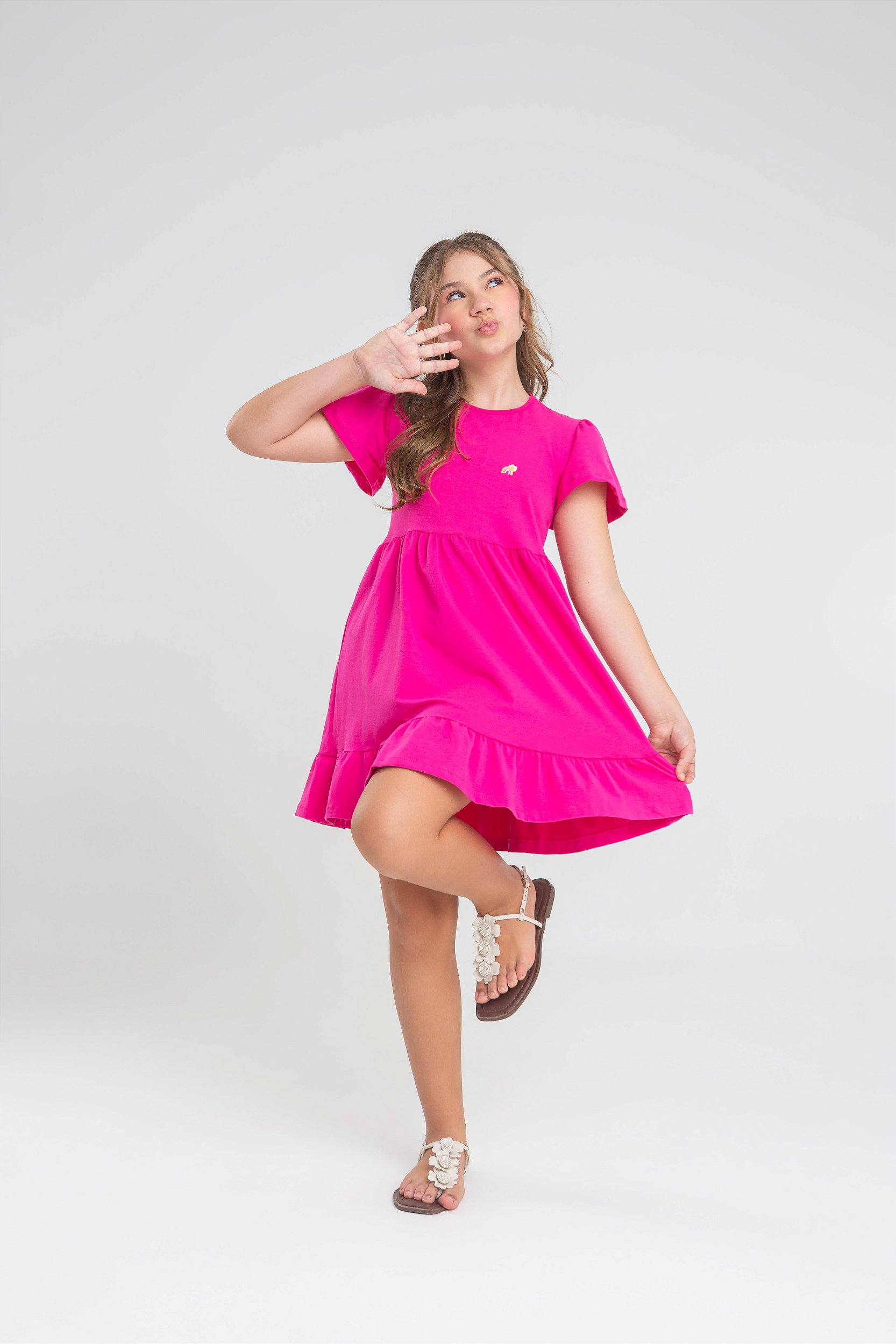 Detalhes: Vestido com manga godê + Botton no busto